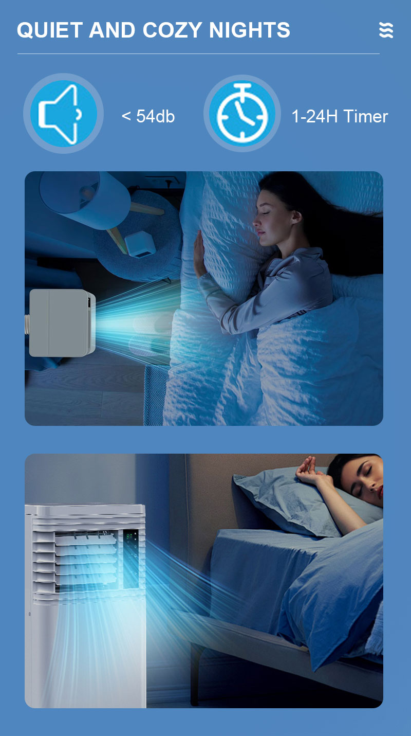 Low Noise Sleep Mode: Our portable AC units are equipped with high efficiency compressors to achieve low noise (≤52dB) level, ensuring no interference on summer nights. Sleeping mode allows you to be extra quiet at rest.