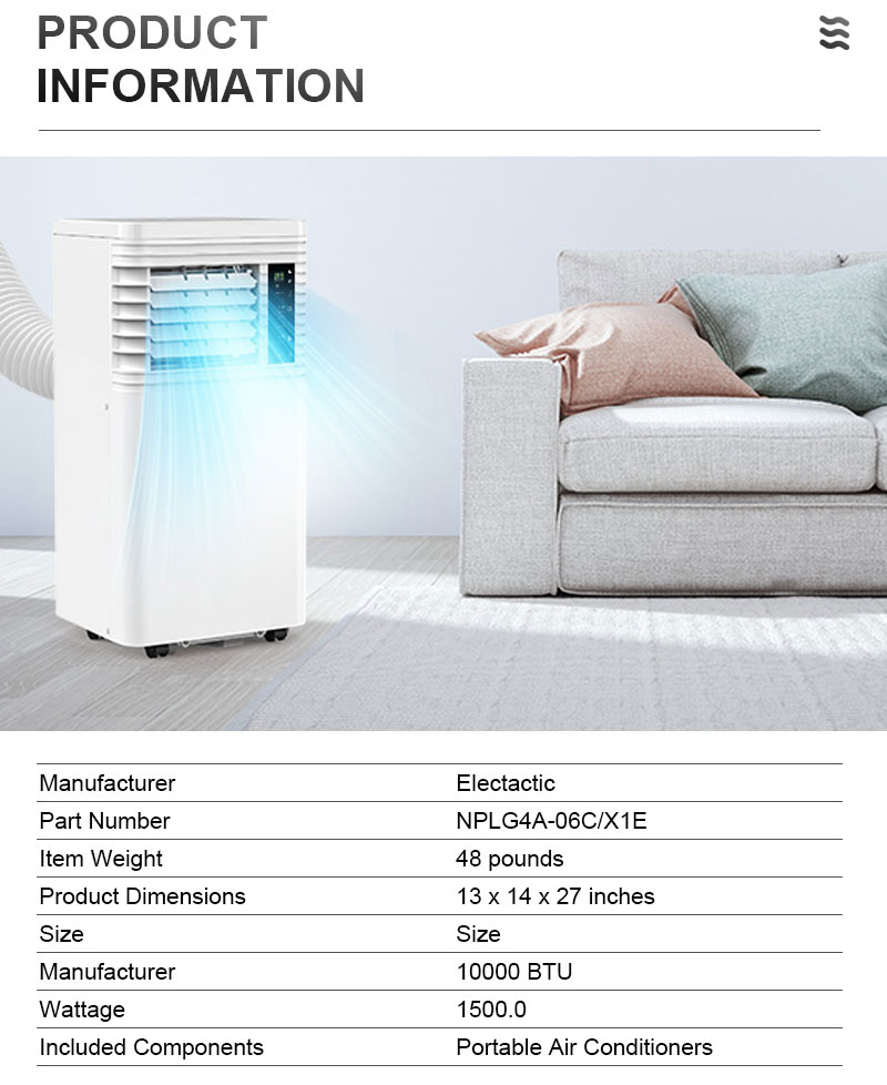 Easy to Install & Move: Standing air conditioner features rolling casters for easy moving, do not require any permanent installation, allowing you to move to the space where you need. It can be used in many places where the installation of outdoor units of air conditioners is limited, such as temporary houses, RV, and garages. Size: 13.39 *11.81 *27.32 inch.
